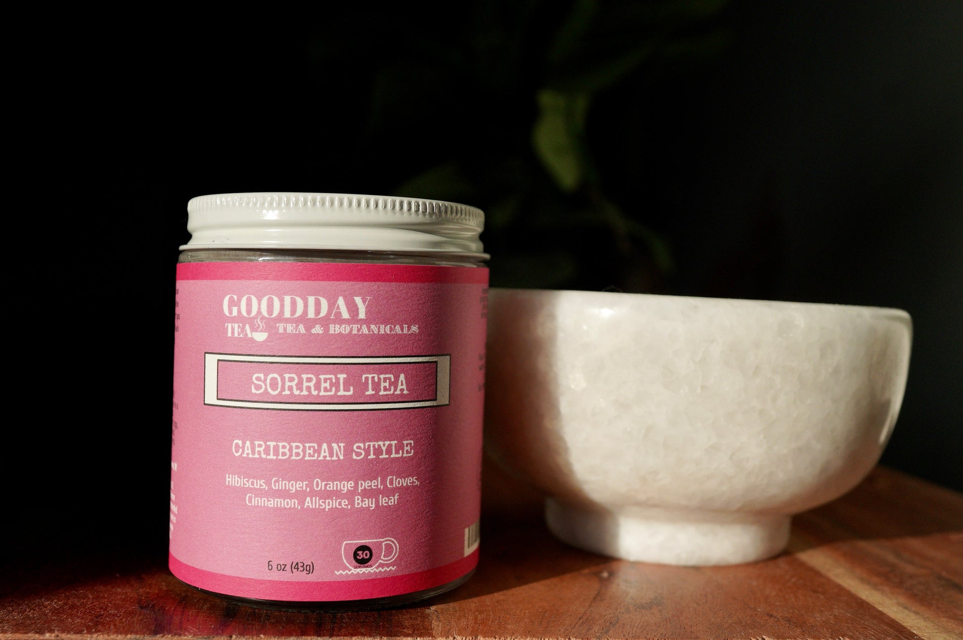 Ingredients: Organic hibiscus, organic ginger root, organic dried orange peel, organic cloves, organic all spice berries, organic bay leaves